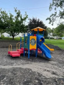 • Dual Pavilions: With two separate pavilions on-site, there is plenty of covered space for events, including the primary pavilion near the playground and a second structure adjacent to the horseshoe pits.