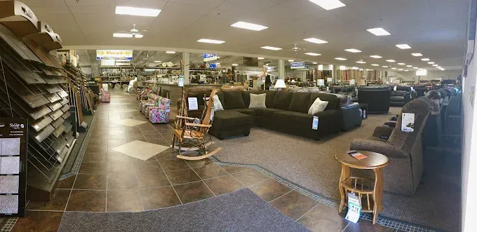 The showroom features an expansive selection of both hard and soft surfaces. Customers can browse through over a hundred rolls of carpet and a vast array of hardwood, laminate, and luxury vinyl tile. Beyond flooring, the business offers a full suite of home furnishings and fixtures, including living room sets, dining furniture, and mattresses from recognizable brands like Ashley and Jackson. They also carry specialized products for more intensive renovations, such as cabinetry, countertops, and complete shower or tub units.