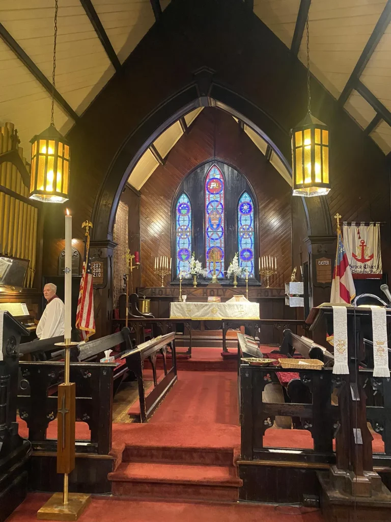 Weekly Worship Services: Sunday morning Holy Eucharist is held in person and often live-streamed, following the patterns of the Book of Common Prayer.