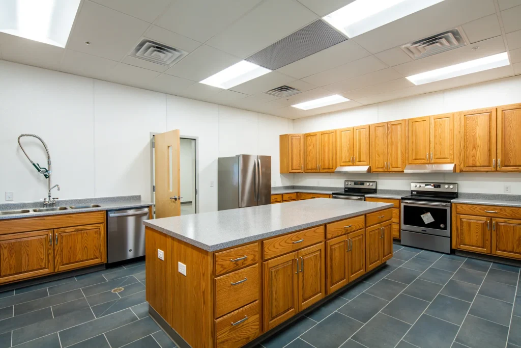 A Professional Commercial Kitchen: Fully health-inspected and equipped to handle large-scale catering and food preparation.